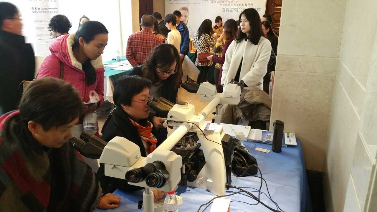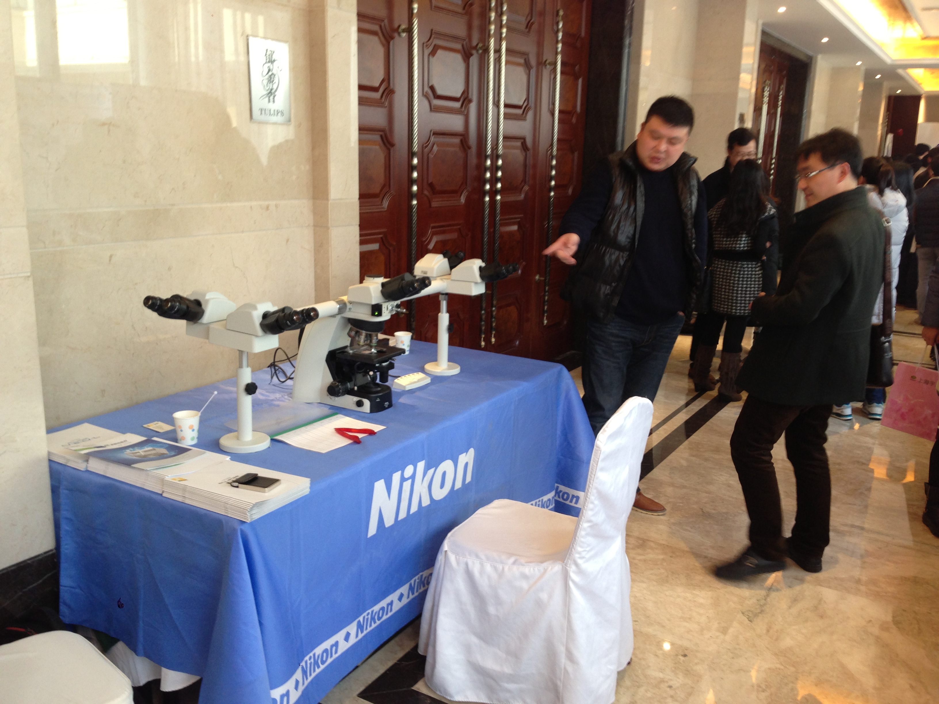 2015年江蘇省細胞病理學(xué)術(shù)會(huì )議于2015年12月25-27日在揚州花園國際大酒店召開(kāi)。我公司派出四位代表參加該次會(huì )議,并展出了Nikon——Ci-E五人共覽病理顯微鏡。會(huì )議期間,與會(huì )人員紛紛來(lái)到我公司展位,在工作人員的詳細介紹與引導下使用Ci五人共覽顯微鏡,觀(guān)察病理切片,并給予一致好評。